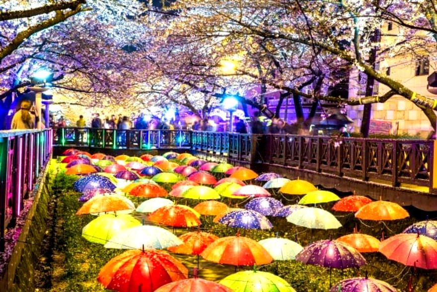 คลองแห่งนี้ใช้เป็นโลเกชั่นถ่ายทำซีรี่ย์เรื่อง Romance ซึ่งออกอากาศเมื่อปี 2002 หลังจากนั้นก็กลายเป็นหนึ่งในสถานที่ท่องเที่ยวยอดนิยมของบรรดาคู่รัก เพราะตลอดแนวยาวของคลองแห่งนี้เรียงรายไปด้วยต้นซากุระแน่นขนัด บรรยากาศช่วงวาเลนไทน์จะสวยโรแมนติกแบบอาร์ตๆ ในขณะที่ช่วงใบไม้ผลิที่ดอกซากุระบานสะพรั่งก็สวยสดใส ทำให้สามารถเดินทางมาเยือนได้ทุกฤดู